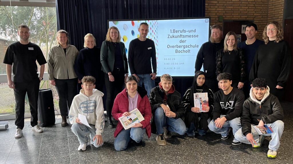 Am 3. Februar 2026 fand an der Overbergschule in Bocholt erstmals eine Berufs- und Zukunftsmesse statt. In der Zeit von 9.00 bis 11.00 Uhr erhielten die Schülerinnen und Schüler der Klassen 8 – 10 die Gelegenheit, sich intensiv mit ihrer beruflichen Zukunft auseinanderzusetzen und wertvolle Einblicke in unterschiedliche Ausbildungswege zu gewinnen.